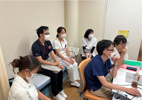 医師、看護師、医療ソーシャルワーカー、公認心理師など他職種と情報共有し、問題点の抽出や介入方法について議論を行っています。
