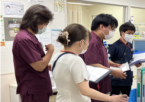 感染対策の観点から、医薬品や消毒薬などの管理・保管状態を点検します。