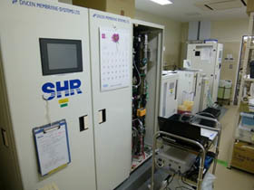 透析業務には欠かすことのできない水処理装置です。血液浄化センター内への透析液の供給および集中治療室の透析用水はこちらで作成されます。