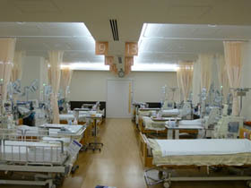 ベット上安静な患者さま、呼吸器を使用している患者さま、また空気感染症に罹患している患者さまにも対応できるよう、スケールベット・医療ガス配管・陽陰圧管理ができる個室・生体情報モニタが完備されております。