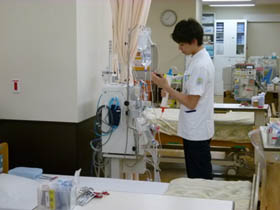 主に透析の導入、治療目的で入院された維持透析患者さまの透析を行っています。外来透析は行っていません。