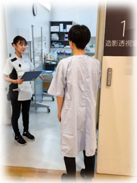 検査に関する問診を行い、着替え等の準備をしていただきます。