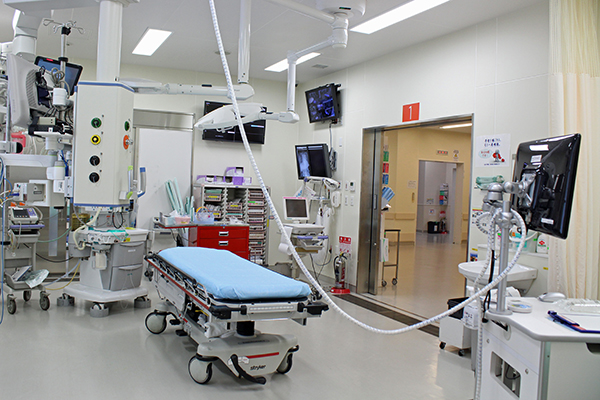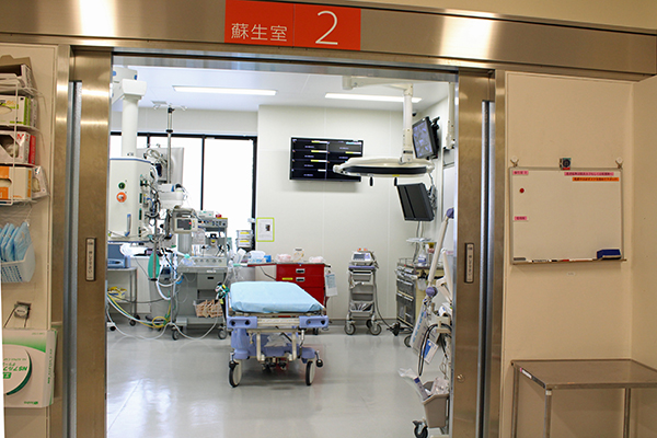 初療室の中で一番広い部屋。 様々な処置を要する可能性のある症例(主に外傷症例)を診療する際に使用します。
